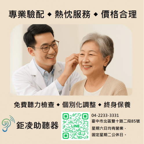 我們位於臺中市北區,靠近一中商圈及孔廟,深耕在地超過10年,由中山醫學大學語聽系研究所雙碩士劉時旭先生領軍,團隊具備專業的聽力學背景與熱忱的服務精神,提供從「聽力檢查」到「助聽器配戴」與「協助補助申請」的完整服務。